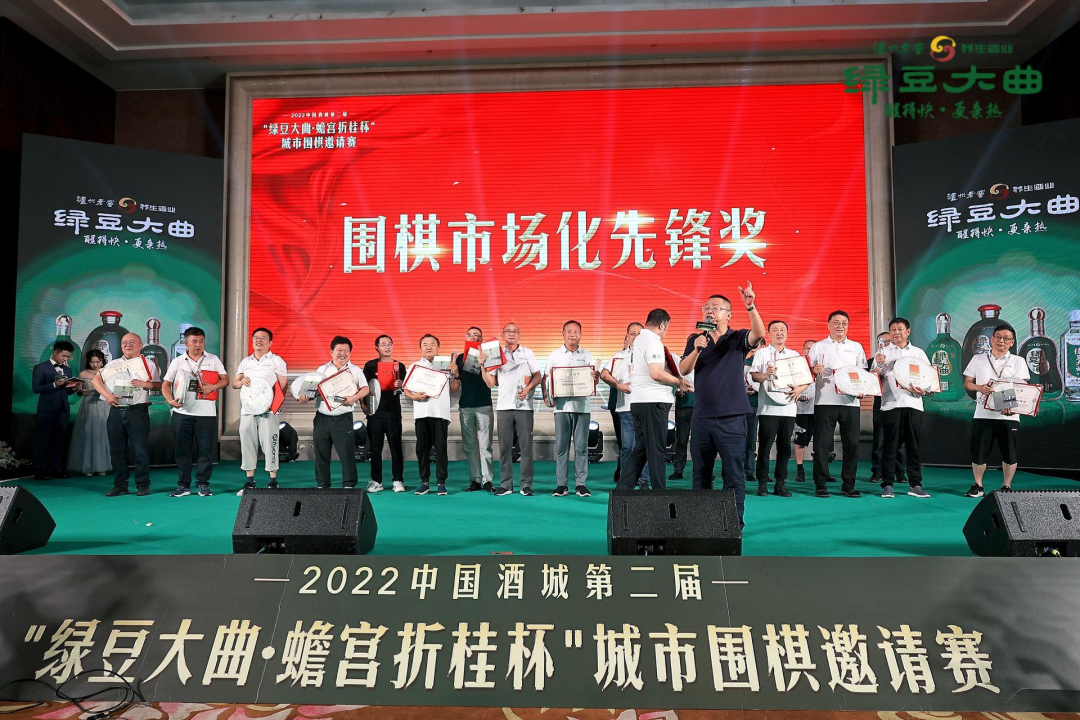 四川省围棋协会竞赛部部长郑策、泸州市围棋协会会长艾如春、泸州市围棋协会常务副会长李霄、王立东、张彪,以及企业方代表:泸州老窖酒传统酿制技艺第22代传承人、泸州老窖股份有限公司董事、副总经理、总工程师沈才洪;泸州老窖酒传统酿制技艺第23代传承人、泸州老窖养生酒业有限责任公司总经理兰余;泸州市围棋协会常务副会长、泸州老窖养生酒业有限责任公司绿豆大曲事业部、泸州绿豆大曲健康酒业有限公司总经理李伟,以及来自全国76座城市的300余名参赛棋手、裁判组成员共同出席了此次围棋邀请赛的闭幕式。 本次比赛采用九轮编排积分赛制,个人积分高低决定个人奖励,团队成员积分总和决定团队名次,经过3天的精彩角逐,共决出四个分组共64个个人奖,和开封、泸州等10个团队奖。 除了颁奖典礼,在闭幕式环节还融入了棋酒融合、茶酒融合的品牌解读。 泸州老窖养生酒业绿豆大曲事业部总经理李伟首先为大家分享了大健康时代下的茶酒融合新营销模式,就以“茶空间为载体的商业模式”进行了深入解读,探讨通过围棋市场化的方式实现棋酒融合的发展。 绿豆大曲事业部华南大区总监饶明强现场解读蟾宫折桂品牌;绿豆大曲事业部华北大区总监薛策则为大家带来了绿豆大曲产品与品牌介绍;绿豆大曲事业部西南大区总监邱海洋带领团队为大家演示了绿豆大曲抗氧化实验。一系列品牌主题讲解,让各位参赛棋手深入地了解了绿豆大曲和蟾宫折桂的健康基因。 泸州老窖股份有限公司副总经理、总工程师沈才洪在闭幕致辞中表示“白酒与围棋,二者同根同脉,都是中华民族追求“天人合一、和谐共存”的智慧结晶。一副棋盘,寓意天圆地方。一黑一白,一动一静,意味着太极“阴阳”循环往复,交融调和。中国白酒同样如此,蕴含着丰富的阴阳交融、相济相生之道。并祝愿大家“棋酒相伴,快意人生”! 此次围棋邀请赛承办单位负责人--泸州市围棋协会会长艾如春宣布闭幕,艾会长表示将始终坚持为全国各地业余围棋爱好者搭建一个“快乐围棋”竞技平台的办赛宗旨,把“绿豆大曲·蟾宫折桂杯”城市围棋邀请赛,办成全国围棋人向往的品牌赛事。 值得一提的是,参加本次围棋邀请赛的队伍中,有二十一支队伍在赛前已与绿豆大曲建立了合作关系,共同探索绿豆大曲围棋圈层市场化的发展。为了表彰这些为围棋市场化探索做出贡献的队伍,本次赛事组委会还专门设置了“围棋市场化先锋奖”并由沈才洪、兰余、李伟共同为二十一位嘉宾颁发这一具有特殊意义的奖项。 琴棋书画诗酒茶,棋、酒、茶都是中华文化的精髓,酒香茶韵与围棋的相遇,是一次相互促进,相互融合的文化交流。此次“绿豆大曲·蟾宫折桂杯”城市围棋邀请赛,不仅加强了各地围棋爱好者之间的联系与交流,更促进了围棋文化与白酒文化的深度融合。在茶、酒等文化属性深厚产品市场竞争日益激烈、终端争夺呈现白热化的今天,绿豆大曲酒、蟾宫折桂茶坚持创新营销模式、另辟赛道,致力成为茶、酒产品细分圈层品牌营销的典范。