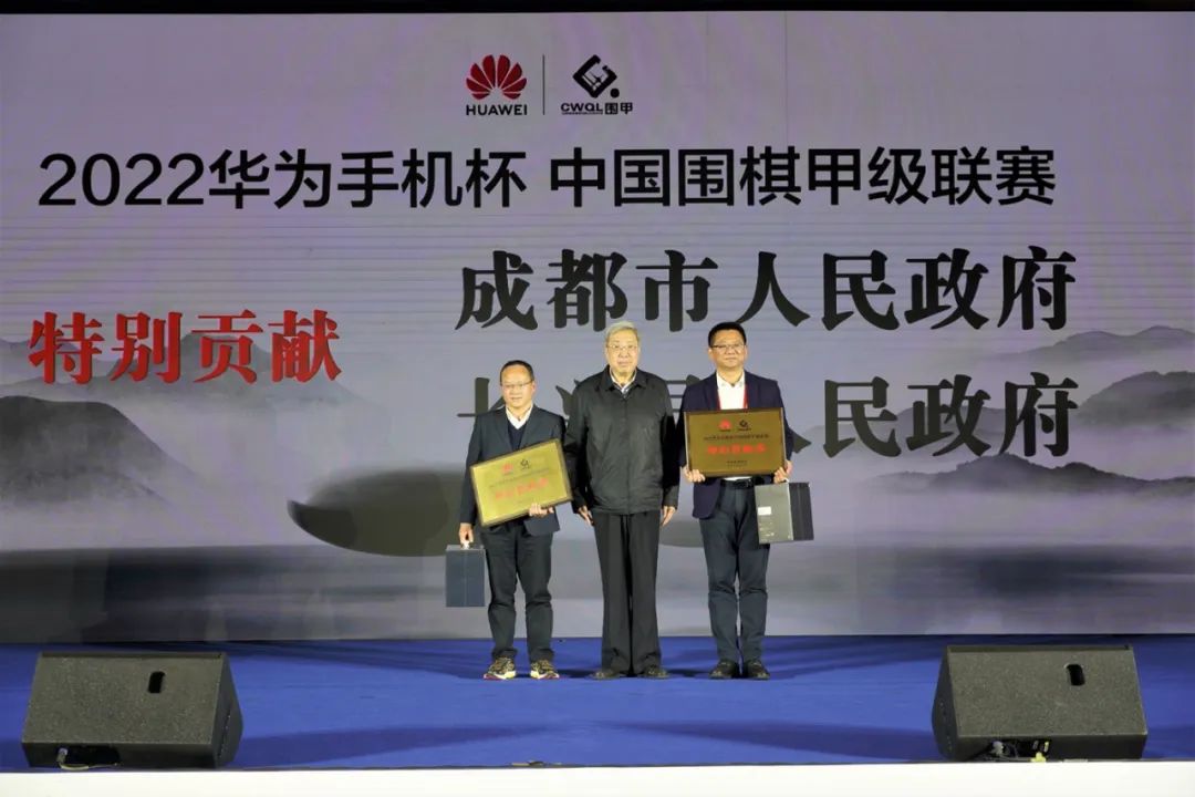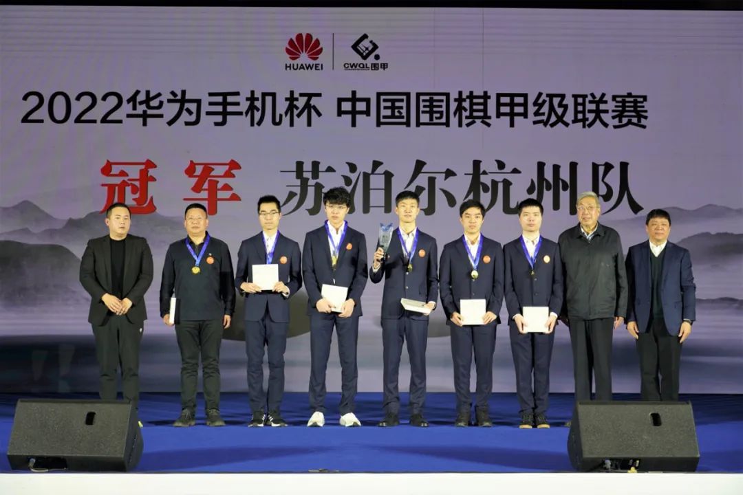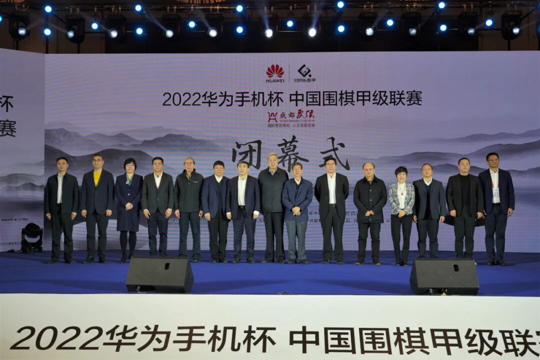 2月18日,2022华为手机杯中国围棋甲级联赛季后赛在成都渝江饭店结束所有赛事,排定各队名次。总决赛第二场较量精彩激烈,冠亚军决赛苏泊尔杭州队2比2战平江苏神兽腓腓队,凭借申真谞的主将胜第六次问鼎;三四名决赛深圳龙华队4比0完胜浙江浙商证券队,总比分7比1获得季军;五六名决赛成都农商银行队2比2主将胜重庆T23队,总比分5比3获得第五名。闭幕式上,除颁发前六名名次奖外,各项个人大奖也同时颁发。李钦诚获得最具价值棋手奖,李维清获得最佳主将奖,李轩豪获得最多胜局奖,叶长欣获得最佳新人奖,杭天鹏获得最佳领队奖,蓝天获得最佳教练奖。衢州烂柯队获得最佳体育精神奖,谢科、芈昱廷、柯洁、杨鼎新、范廷钰、许嘉阳获得华为“精彩瞬间”奖,野狐围棋获得最佳赛事技术支持奖,长兴县文化和广电旅游体育局、武侯区人民政府获得最佳赛区奖,长兴县人民政府、成都市人民政府获得特别贡献奖。出席闭幕式的嘉宾有:中国围棋协会主席林建超,中国围棋协会原主席王汝南,中国围棋协会副主席聂卫平,中国围棋协会副主席、浙江省围棋协会主席孙光明,中国围棋协会原副主席华以刚,中国围棋协会副主席华学明;四川省体育局副局长朱明,省围棋协会名誉主席龚锦华;成都市体育局副局长陈志,成都市体育局机关党委书记杨慎微,武侯区副区长陈丽娜,武侯区文体旅局局长蒋建义,成都棋院院长危建华;华为终端有限公司四川终端业务部部长李炜;长兴县文化和广电旅游体育局副局长陈新国;获得前六名各队队员、领队、教练以及最佳体育精神奖等奖项获得单位代表等。