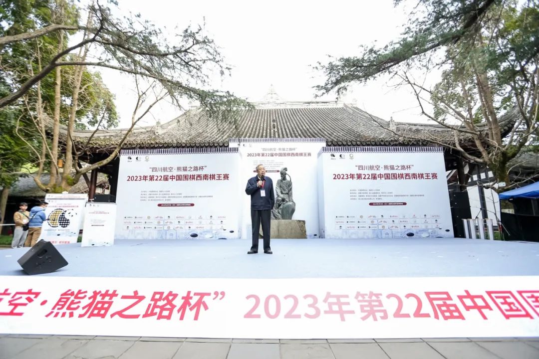 抽签完毕后,龙勇和林建超先后致辞。龙勇表示很欣慰川航冠名赞助的西南棋王赛成为国家体育总局公布的“2022中国十佳体育旅游精品项目”,对包括8位世界冠军在内的众多高手前来参加本届比赛表示感谢,并表示将一如既往支持西南棋王赛。尤勇还介绍了川航近年来的快速发展,希望通过“熊猫之路”在海内外搭起以棋会友的桥梁,为围棋发展贡献川航力量。