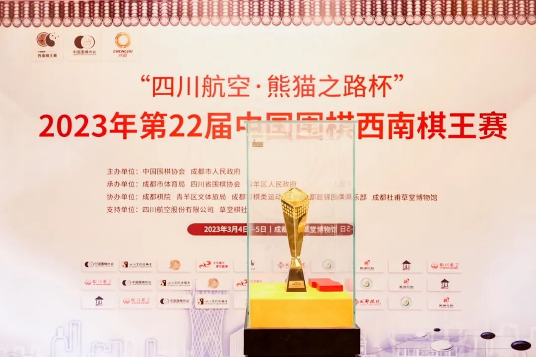 “四川航空·熊猫之路杯”2023年第22届中国围棋西南棋王赛主办单位:中国围棋协会、成都市人民政府;承办单位:成都市体育局、四川省围棋协会、青羊区人民政府;协办单位:成都棋院、青羊区文体旅局、成都市棋类运动协会、成都懿锦围棋俱乐部、成都杜甫草堂博物馆;支持单位:四川航空股份有限公司、草堂棋社。冠军奖金25万元,亚军奖金12万元,第三轮对局费12000元,第二轮对局费10000元,第一轮对局费7000元。