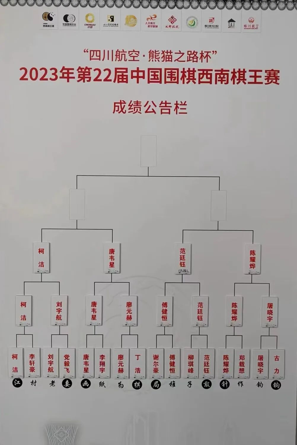 3月4日,“四川航空 · 熊猫之路杯”2023年第22届中国围棋西南棋王赛在成都杜甫草堂开幕并连赛两轮。中国围棋协会主席林建超,副主席聂卫平,副主席华学明;四川省体育局副局长朱明,四川省围棋协会名誉主席龚锦华,四川航空集团副总经理龙勇;成都市体育局副局长陈志,成都市体育局机关党委书记杨慎微,青羊区副区长杜忠云,成都市文化广电旅游局二级巡视员、成都杜甫草堂博物馆馆长刘洪,成都棋院院长危建华,青羊区文体旅局局长江颖,以及16名参赛棋手、CCTV5等媒体记者出席开幕式。今天的比赛柯洁连胜李轩豪、刘宇航,与范廷钰、唐韦星、陈耀烨一起打入四强。半决赛柯洁对唐韦星,范廷钰对陈耀烨,半决赛、决赛将成为世界冠军的舞台。