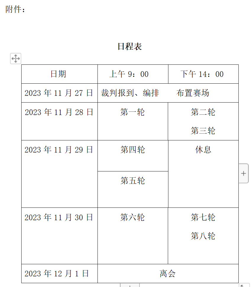 (一)各参赛单位请于2023年11月18日前提交报名表,请每队报名时提供领队、棋手的彩色照片及下棋简历,以便编印秩序册。报名同时请提供超编人员及需住单间人员的住宿要求,以便提早安排。